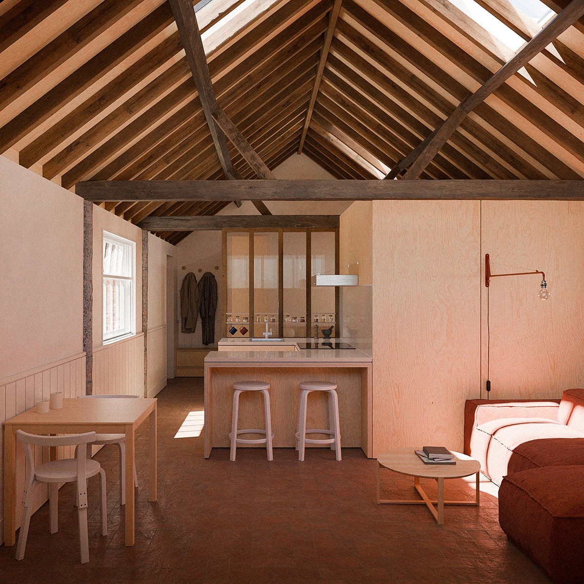 The result is a calm, spatially efficient retreat that celebrates the barn’s modest scale and enduring rural identity through thoughtful adaptation.